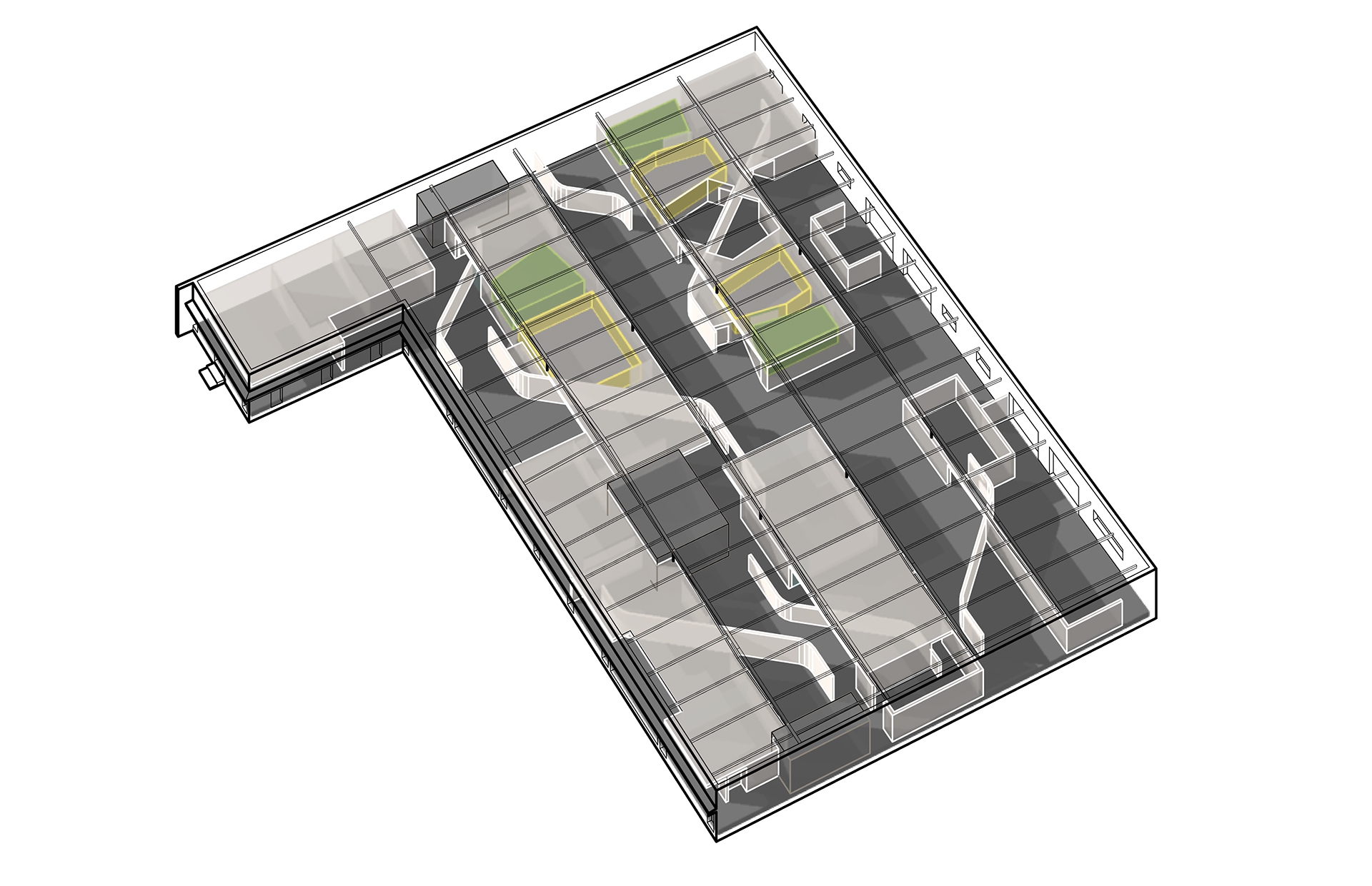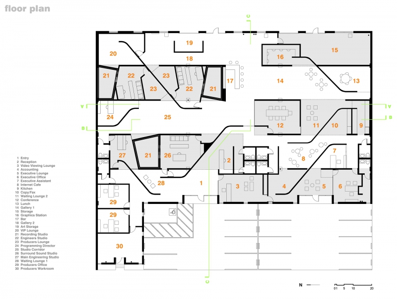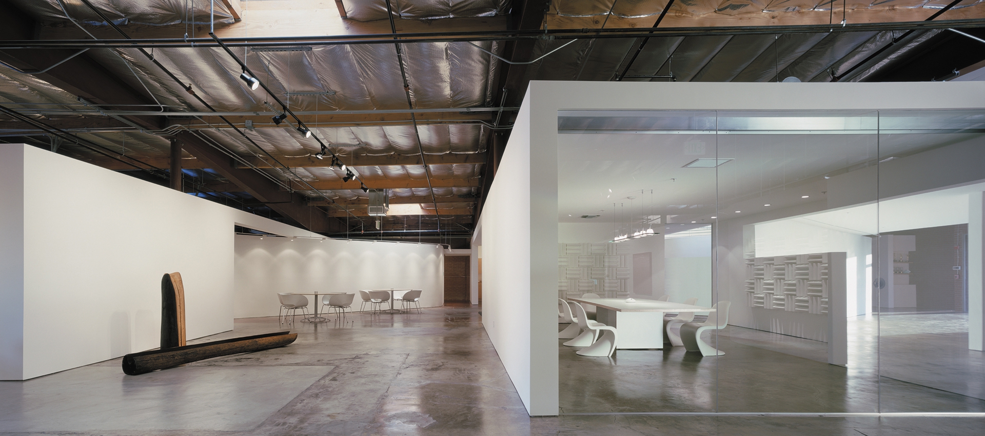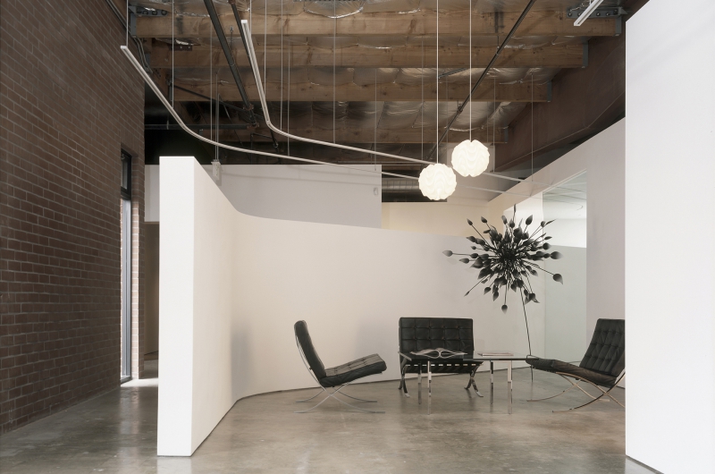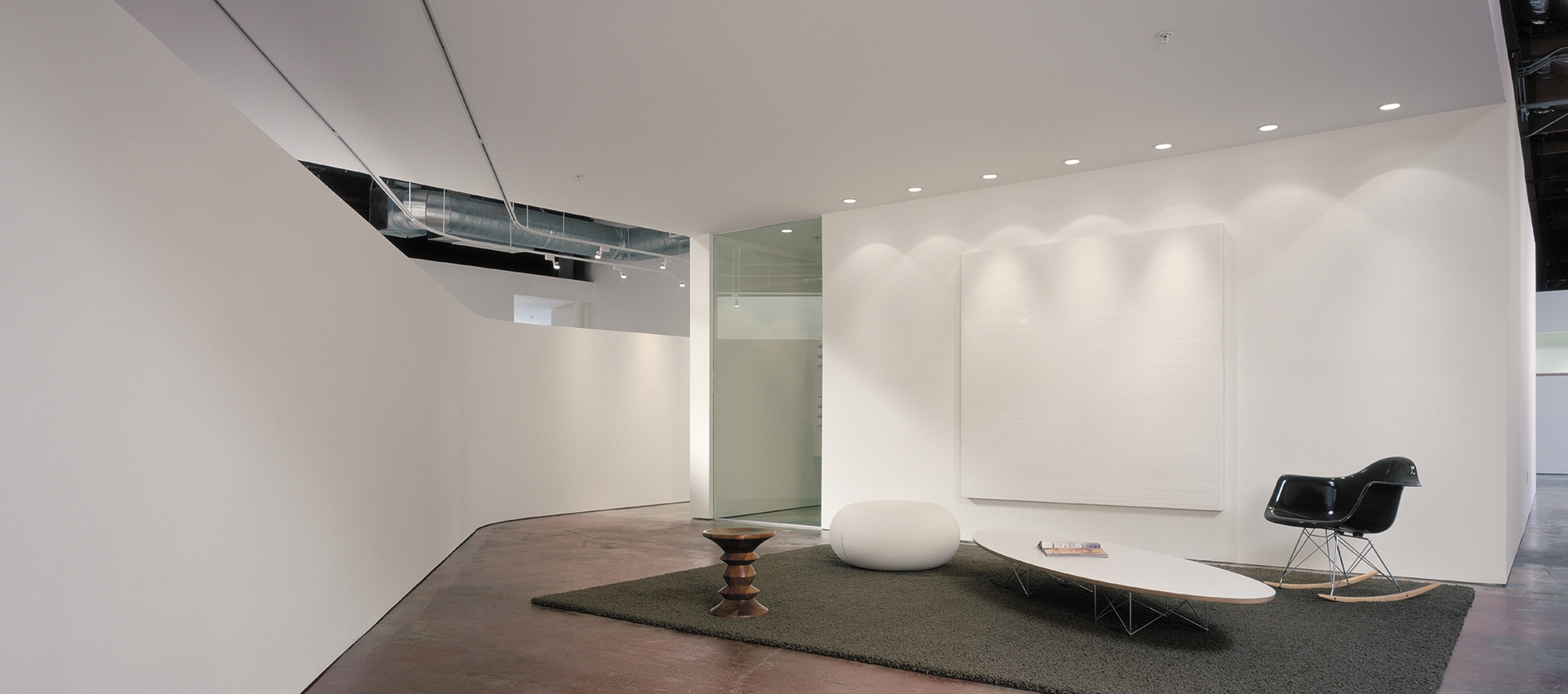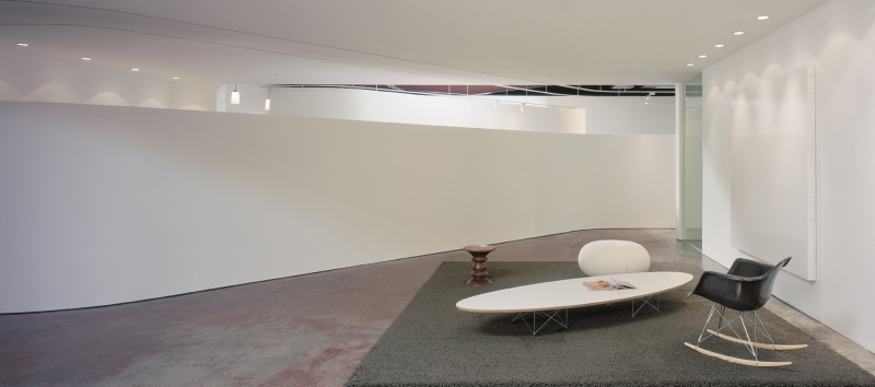 “Here in a city of ephemera and competitive image making, even the sound people need to keep reinventing their look.  For AZLA’s new location, the latest in acoustics and technology simply wouldn’t have been enough…By design, AZLA refrains from announcing itself as a sound studio, especially in its entry area and other communal zones.  While perceived openness and exposed industrial elements play essential roles, the architects intentionally concealed, or inverted, the operation’s technological brawn and vascular underlay of cables, opting instead for sleek understatement.” – Sarah Amelar, Architecture Record