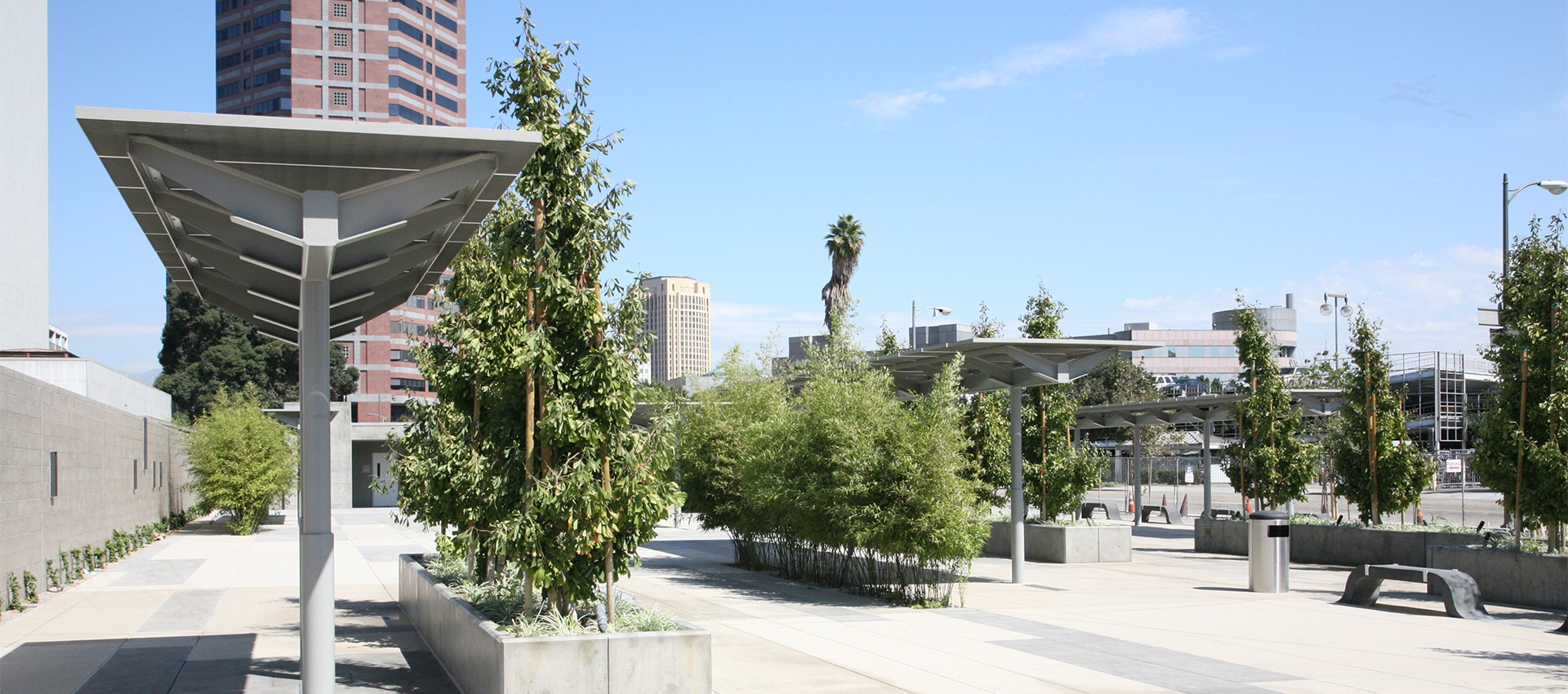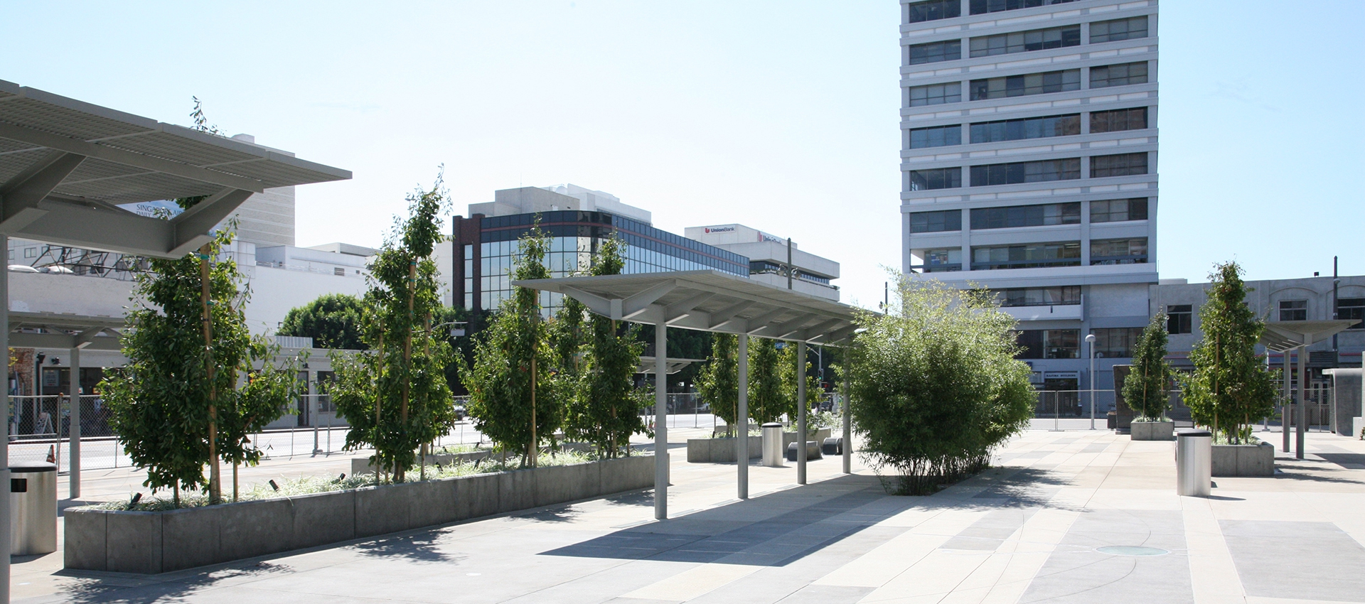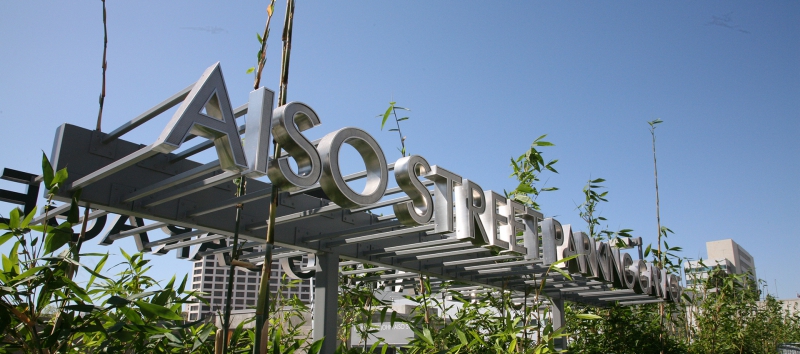 Toriumi Plaza sits atop the Aiso Street Parking Facility at 1st Street and Judge John Aiso Street. A City of Los Angeles-funded project initiated by the Bureau of Engineering, it is slightly more than one acre in size. The Plaza is dedicated to community activist Reverend Howard Noboru Toriumi, a minister of the Union Church in Little Tokyo, who spearheaded efforts to define the Little Tokyo Community Redevelopment Project Area and founded what later became the influential Little Tokyo Community Advisory Council. The plaza’s design allows for future population with retail kiosks, a key provision that will activate this urban space as an important gateway to the Little Tokyo Commercial District.